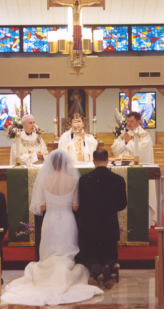 Marriage is a sacrament. It is a great sacrament, and we must look upon it as such at all times. As a sacrament, Matrimony is as holy as is Baptism, Holy Eucharist and Holy Orders. Holy Mother Church shows Her high appreciation of Matrimony by endowing its reception with a special solemnity. Baptism is usually administered outside the sanctuary in the baptistery of the church or even in a hospital. Reconciliation may be received in the Confessional, and Anointing of the Sick frequently occurs outside of the church building. When a person receives Holy Communion or Confirmation, he approaches, but does not enter the sanctuary. But with marriage, provided it is celebrated in connection with Holy Mass, the Church throws open the gates of the sanctuary and introduces the candidates into the Holy of Holies, the very spot where we offer the body and blood of Jesus Christ. Have you ever thought of that? For centuries only two sacraments have been administered in the sanctuary, Holy Orders and Matrimony.