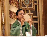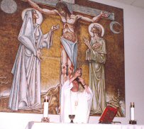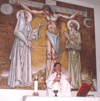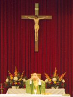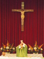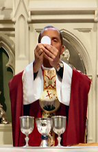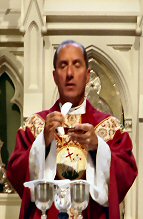 ...Who, as the Lamb of God in each Mass today, is offered again to the Father in an unbloody manner by priests throughout the world.  The reality is Christ's actual presence - body and blood, soul and divinity - in the consecrated bread and wine.