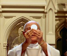...Who is God's gift to the faithful through the Church founded by Christ.  The Holy Eucharist is the central sacrament of the Catholic Faith.  It is the actual body and blood of Christ under the appearances of bread and wine, given through his Church to strengthen the faithful to reach heaven.