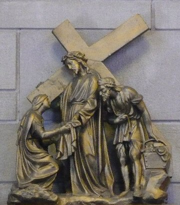 “Your face, Lord, do I seek. Hide not your face from me” (Ps 27:8-9). Veronica – Bernice, in the Greek tradition – embodies the universal yearning of the devout men and women of the Old Testament, the yearning of all believers to see the face of God. On Jesus’ Way of the Cross, though, she at first did nothing more than perform an act of womanly kindness: she held out a facecloth to Jesus. She did not let herself be deterred by the brutality of the soldiers or the fear which gripped the disciples. She is the image of that good woman, who, amid turmoil and dismay, shows the courage born of goodness and does not allow her heart to be bewildered. “Blessed are the pure in heart,” the Lord had said in his Sermon on the Mount, “for they shall see God” (Mt 5:8). At first, Veronica saw only a buffeted and pain-filled face. Yet her act of love impressed the true image of Jesus on her heart: on his human face, bloodied and bruised, she saw the face of God and his goodness, which accompanies us even in our deepest sorrows. Only with the heart can we see Jesus. Only love purifies us and gives us the ability to see. Only love enables us to recognize the God who is love itself.