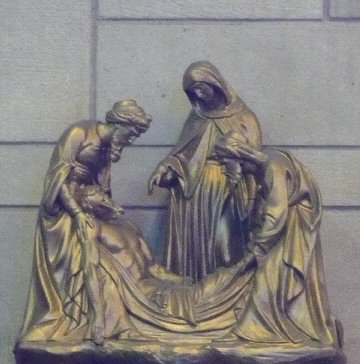 Joseph took the body, and wrapped it in a clean linen shroud, and laid it in his own hew tomb, which he had hewn in the rock; and he rolled a great stone to the door of the tomb, and departed. Mary Magdalene and the other Mary were there, sitting opposite the sepulcher.