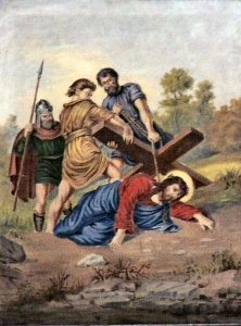 As they led him away, the soldiers seized a man called Simon and laid on him the cross to carry it behind Jesus. (Luke 23:26) Jesus looked in vain for a friendly face among the rude and scoffing multitude. The soldiers forced Simon to help him. The man was frightened and angry, but powerless to refuse.