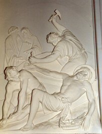 At the Last Supper, Jesus passed the cup of wine to his Apostles with the words, "Drink it all of you for this is my blood which will be poured out for many for the forgiveness of sin," and here on Calvary, the redeeming blood flows freely from his hands and feet as the nails are driven into the tender flesh.  The barbarity of the scene is horrifying, yet in our own day brutality survives on a grand scale in the calculated cruelty of modern warfare and in the thoughtless violence within our own towns and cities.