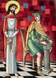 Hymn:  Stripped and jeered by his own nation, Jesus stood in desolation, giving all He had to give.