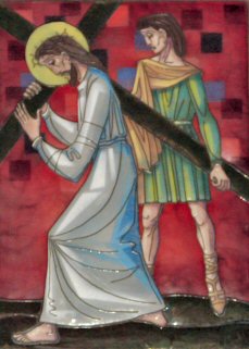 Hymn:  Simon stopped in hesitation, not foreseeing his proud station, called to bear the Cross of Christ.