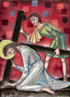 Leader:  And when they had mocked Jesus, they took the purple cloak off and put his own clothes on him, and they led him out to be crucified.  Then they forced a certain passer-by, Simon of Cyrene, coming from the country, to take up his cross.  They brought Jesus to the place called Golgatha, a name meaning the place of the skull". (Mk 15:20-22)