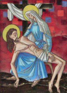 Hymn:  Stunned and stricken, Mary, Mother in your arms was placed our Brother, "Full of grace" now filled with grief.