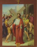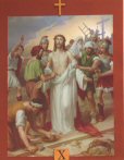 The heavy Cross cuts and tears into Our Lord's shoulders.  The crowd has swollen into a multitude, and the legionaries can scarcely contain the angry, surging mob which, like a river that has burst its banks, flows through the streets and alleyways of Jerusalem.