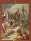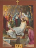 Very near Calvary, in an orchard, Joseph of Arimathea had had a new tomb made, cut out of the rock.  Since it is the eve of the solemn Pasch of the Jews, Jesus is laid there.  Then Joseph, rolling a great stone, closes the grave door and goes away (Matt 27:60).  Jesus came into the world with nothing; so too, with nothing - not even the place where he rests - he has left us.