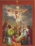 On the uppermost part of the Cross the reason for the sentence is written: Jesus of Nazareth King of the Jews (Jn 19:19).  And all who pass by insult him and jeer at him.  If he is the king of Israel, let him come down here and now from the cross (Matt 27:42).  One of the thieves comes to his defense: This man has done no evil . . . (Luke 23:41).  Then, turning to Jesus, he makes a humble request, full of faith: Lord, remember me when thou comest into thy kingdom (Luke 23:42).  Truly, I say to thee: This day thou shalt be with me in Paradise (Luke 23:43).