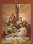 Mary stands by the Cross is engulfed in grief.  And John is beside her.  But it is getting late, and the Jews press for Our Lord to be removed from there.  Having obtained from Pilate the permission required by Roman law for the burial of condemned prisoners, there comes to Calvary a councilor named Joseph, a good and upright man, a native of Arimathea.  He has not consented to their counsel and their doings, but is himself one of those waiting for the kingdom of God (Luke 23:50-51).  With him too comes Nicodemus, the same who earlier visited Jesus by night; he brings with him a mixture of myrrh and aloes, about a hundred pounds weight (John 19:39).