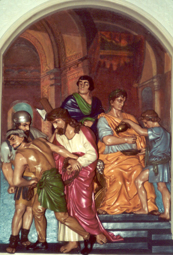 "Christ suffered for us, leaving you an example, that you should follow his steps." - 1 Peter The Stations of the Cross bring to us scenes from the final hours of the redemptive mission of Jesus Christ. As we view them we should consider how, by our selfishness, we have placed other things or persons ahead of his sufferings and the opportunity he earned for us to reach heaven. By our acts of charity and sufferings we join with Christ in his saving mission. |