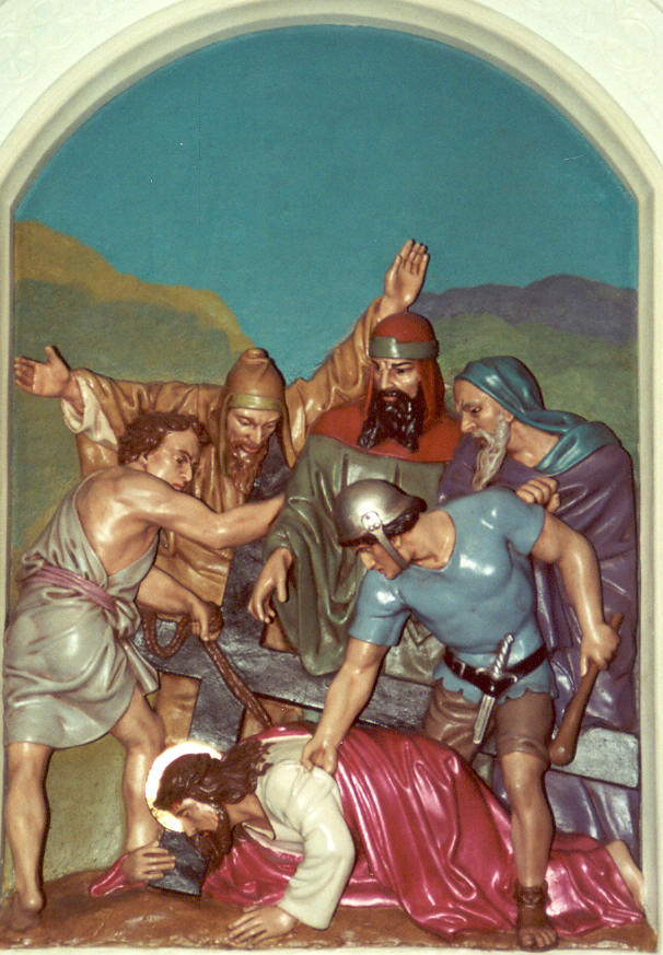 Jesus falls the first time.