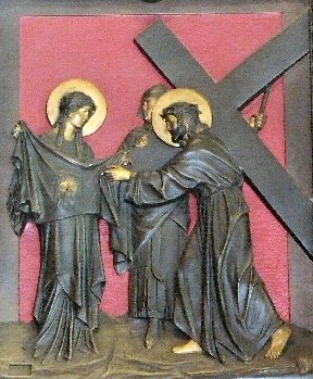“Your face, Lord, do I seek. Hide not your face from me” (Ps 27:8-9). Veronica – Bernice, in the Greek tradition – embodies the universal yearning of the devout men and women of the Old Testament, the yearning of all believers to see the face of God. On Jesus’ Way of the Cross, though, she at first did nothing more than perform an act of womanly kindness: she held out a facecloth to Jesus. She did not let herself be deterred by the brutality of the soldiers or the fear which gripped the disciples. She is the image of that good woman, who, amid turmoil and dismay, shows the courage born of goodness and does not allow her heart to be bewildered. “Blessed are the pure in heart,” the Lord had said in his Sermon on the Mount, “for they shall see God” (Mt 5:8). At first, Veronica saw only a buffeted and pain-filled face. Yet her act of love impressed the true image of Jesus on her heart: on his human face, bloodied and bruised, she saw the face of God and his goodness, which accompanies us even in our deepest sorrows. Only with the heart can we see Jesus. Only love purifies us and gives us the ability to see. Only love enables us to recognize the God who is love itself.