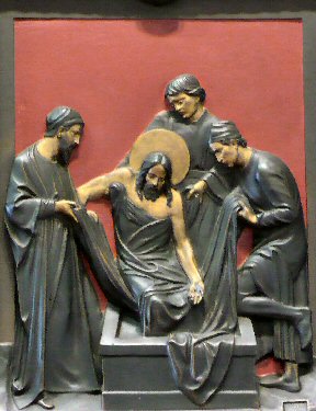 Jesus, disgraced and mistreated, is honorably buried in a new tomb. Nicodemus brings a mixture of myrrh and aloes, about a hundred pounds weight, which gives off a precious scent. In the Son’s self-offering, as at his anointing in Bethany, we see an “excess” which evokes God’s generous and superabundant love. God offers himself unstintingly. If God’s measure is superabundance, then we for our part should consider nothing too much for God. This is the teaching of Jesus himself, in the Sermon on the Mount (Mt 5:20). But we should also remember the words of Saint Paul, who says that God “through us spreads the fragrance of the knowledge of Christ everywhere. We are the aroma of Christ” (2 Cor 2:14ff.). Amid the decay of ideologies, our faith needs once more to be the fragrance which returns us to the path of life. At the very moment of his burial, Jesus’ words are fulfilled: “Truly, truly, I say to you, unless a grain of wheat falls to the earth and dies, it remains alone; but if it dies, it bears much fruit” (Jn 12:24). Jesus is the grain of wheat which dies. From that lifeless grain of wheat comes forth the great multiplication of bread which will endure until the end of the world. Jesus is the bread of life which can satisfy superabundantly the hunger of all humanity and provide its deepest nourishment. Through his Cross and Resurrection, the eternal Word of God became flesh and bread for us. The mystery of the Eucharist already shines forth in the burial of Jesus.