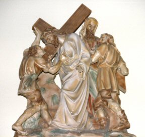 Consider the first fall of Jesus. Loss of blood from the scourging and crowning with thorns had so weakened Him that He could hardly walk; and yet He had to carry that great load upon His shoulders. As the soldiers struck Him cruelly, He fell several times under the heavy cross.
