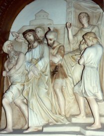 It is after ten in the morning.  The trial is moving to its close.  There has been no conclusive evidence.  The judge knows that his enemies have handed Jesus over to him out of envy, and he tries an absurd move: a choice between Barabbas, a criminal accused of robbery and murder, and Jesus, who says he is Christ.  The people choose Barabbas, and Pilate exclaims: What am I to do then, with Jesus?  They all reply: Crucify him!  The judge insists: Why, what evil has he done?  Once again they respond, shouting: Crucify him! Crucify him!  Pilate is frightened by the growing uproar.  So he sends for water, and washes his hands in the sight of the people, saying as he does so: I am innocent of the blood of this just man; it is your affair (Matt 27:24).