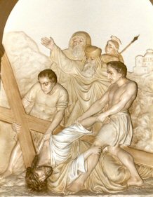 In the whole context of the Passion, this help does not add up to very much.  But for Jesus, a smile, a word, a gesture, a little bit of love is enough for him to pour out his grace bountifully on the soul of his friend.  Years later, Simon's sons, Christians by then, will be known and held in high esteem among their brothers in the faith.  And it all started with this unexpected meeting with the Cross.  I went to those who were not looking for me; I was found by those that sought me not (Is 65:1).