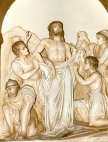 Then, the soldiers strip Christ of his garments.  From the soles of his feet to the top of his head, there is nothing healthy in him: wounds and bruises and swelling sores.  They are not bound up, nor dressed, nor anointed with oil (Is 1:6).