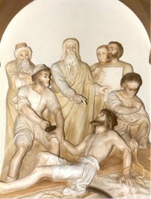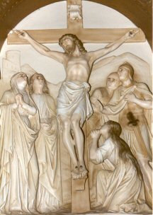 Very near Calvary, in an orchard, Joseph of Arimathea had had a new tomb made, cut out of the rock.  Since it is the eve of the solemn Pasch of the Jews, Jesus is laid there.  Then Joseph, rolling a great stone, closes the grave door and goes away (Matt 27:60).  Jesus came into the world with nothing; so too, with nothing - not even the place where he rests - he has left us.