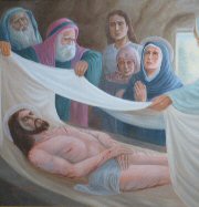 Joseph of Aramathea asked Pilate if he might take the body of Jesus, and Pilate consented. Nicodemus came also and they wrapped the body in linen cloths with spices, as is the burial custom of the Jews. Near the place of the crucifixion, there was a garden, and in it a new tomb where no one had been buried, so as the tomb was near at hand, they laid Jesus there.