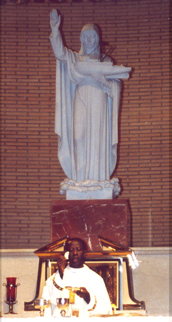Close to Communion now, we repeat the words of a Roman Centurion who once asked Jesus to save one of his servants from death.  The Centurion entreated Jesus not to bother coming to his house, since he did not consider himself worthy to receive Jesus, but simply to give the word and his servant would be cured.  Jesus marveled at this man's faith and granted his request.  Now we, too, say as the Centurion did: "Lord, I am not worthy to receive you, but only say the word and I shall be healed."  Then the priest takes Communion, and the Communion Antiphon is recited or sung.