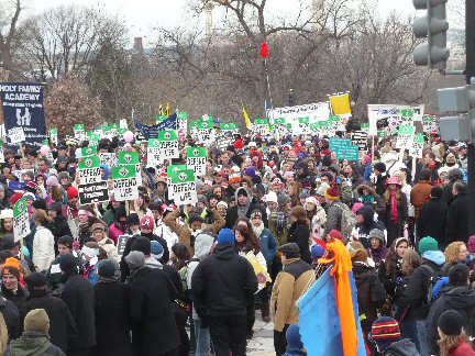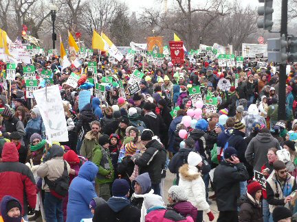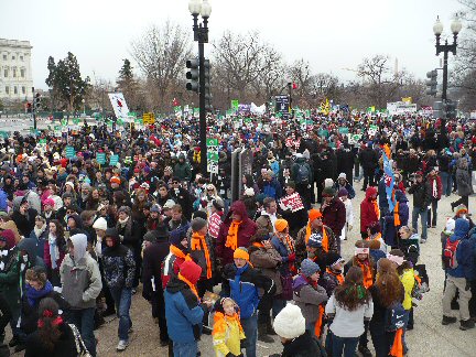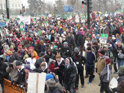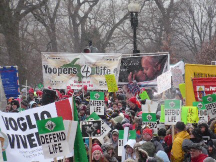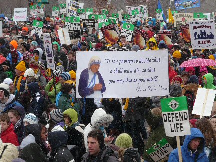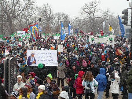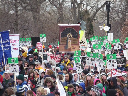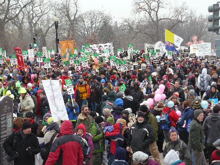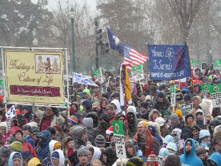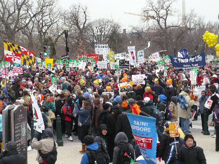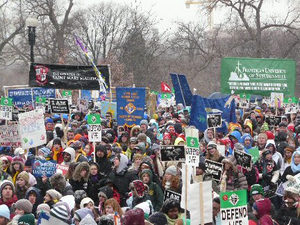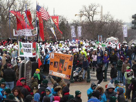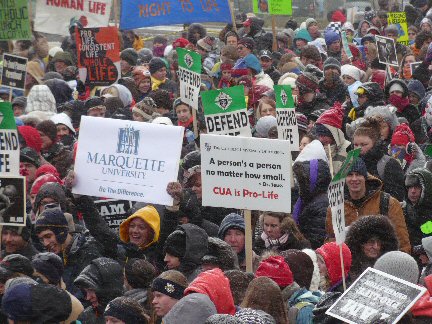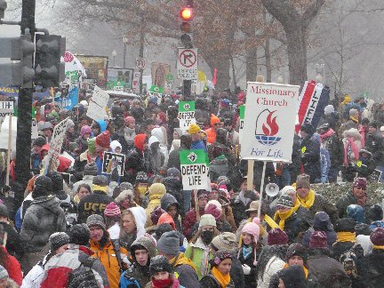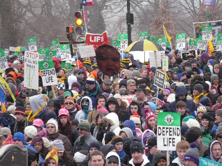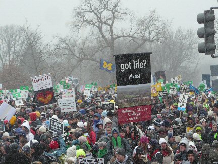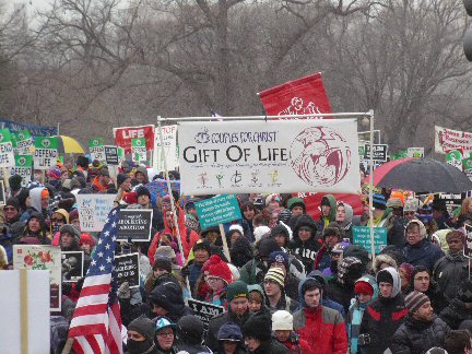 More than 500,000 thousand marchers braved the snow and winter temperature in the low 20s to publicly profess their conviction that the life of the unborn child is sacred and therefore has value.