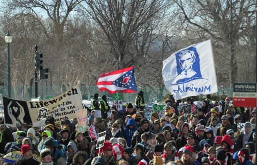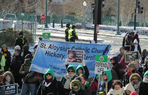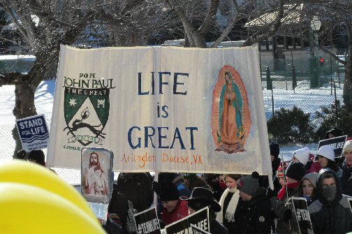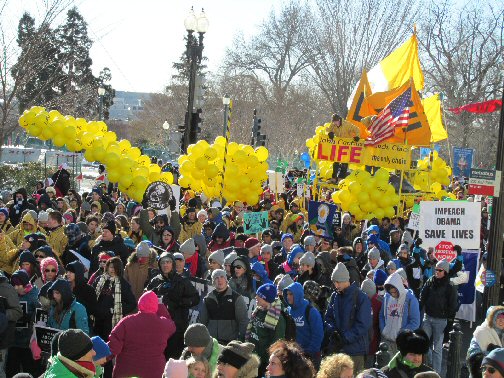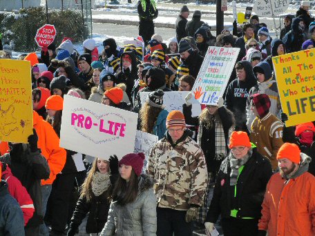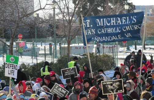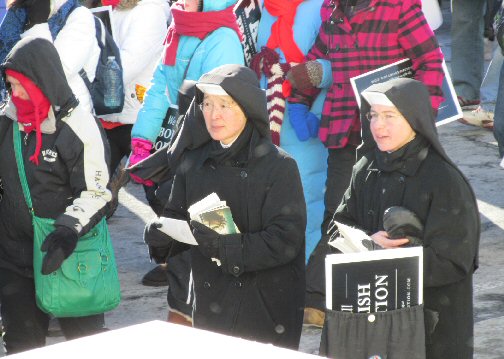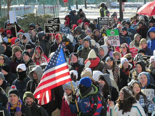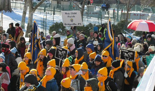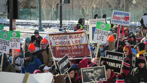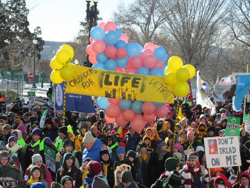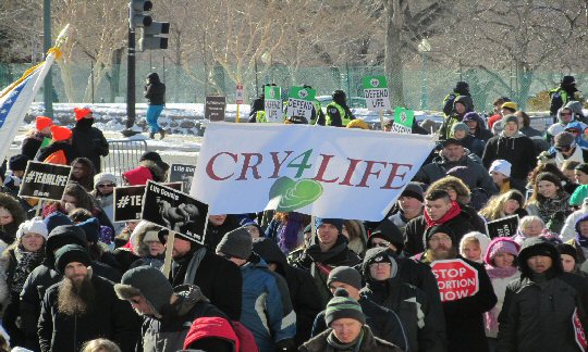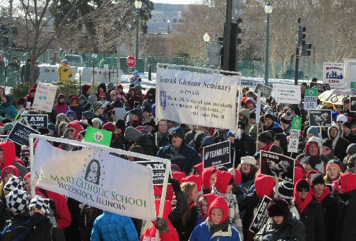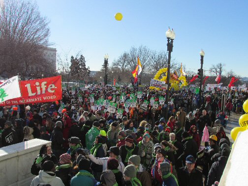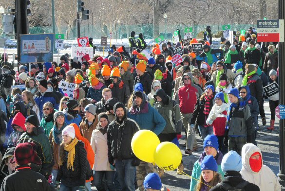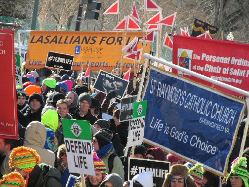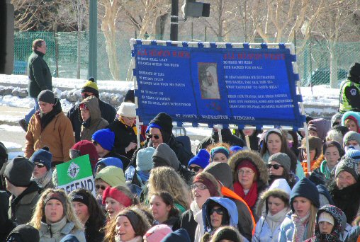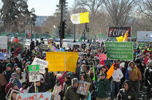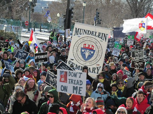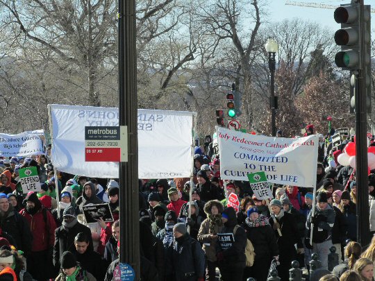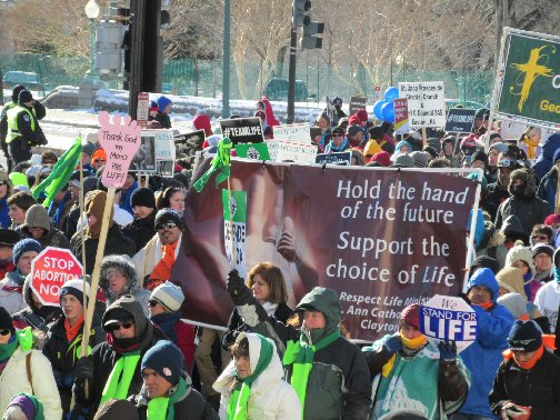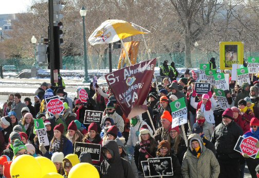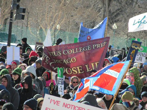 This year, more that 200,000 marchers braved a sudden winter storm which the day before brought more than six inches of snow to the suburbs, and mid-teen temperatures with strong gusting artic winds.