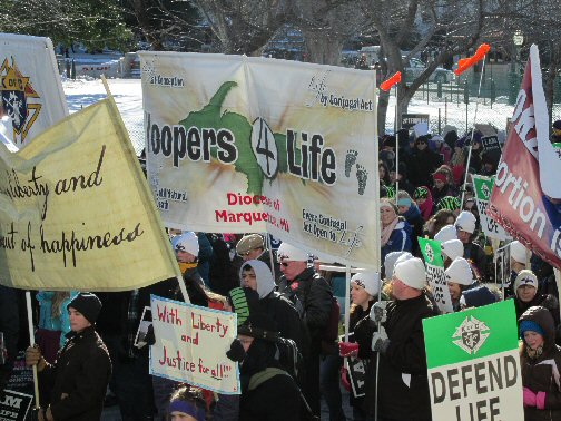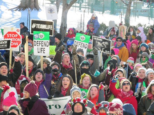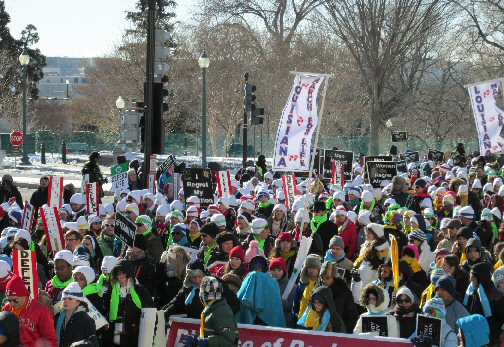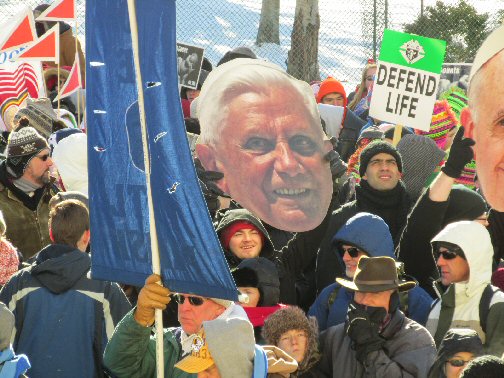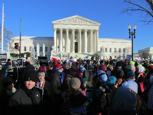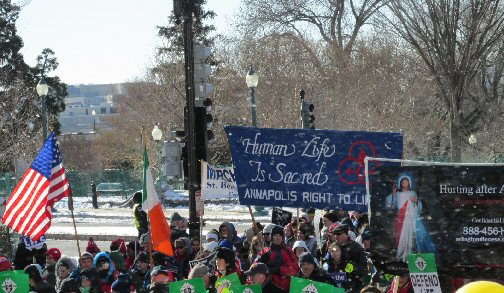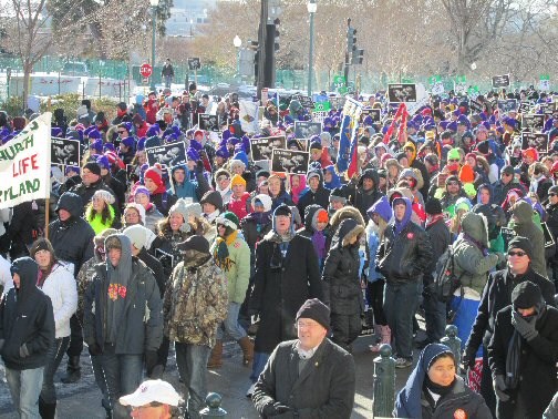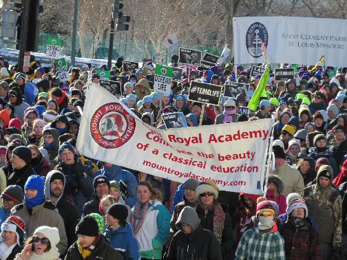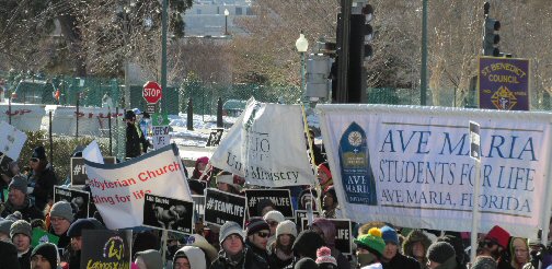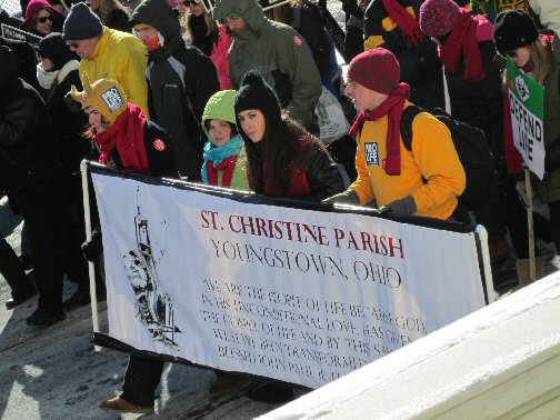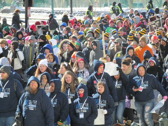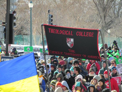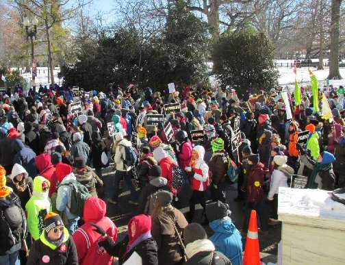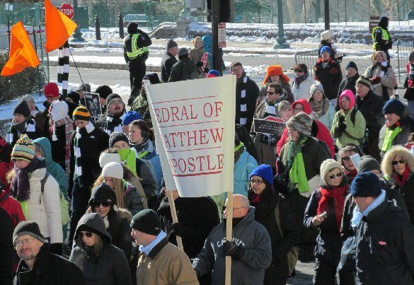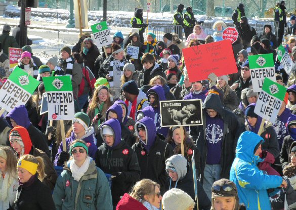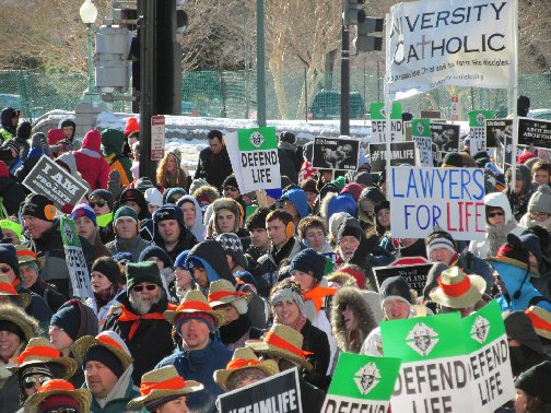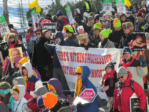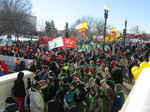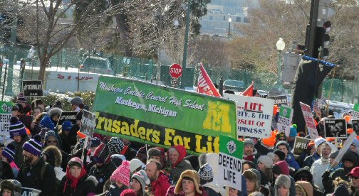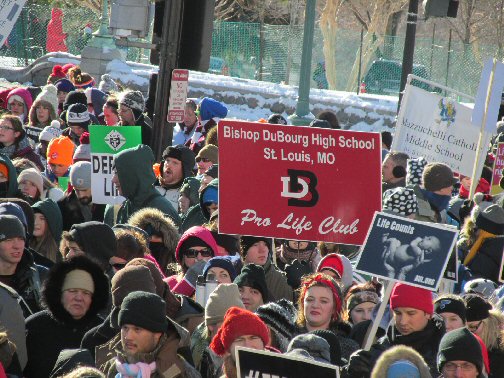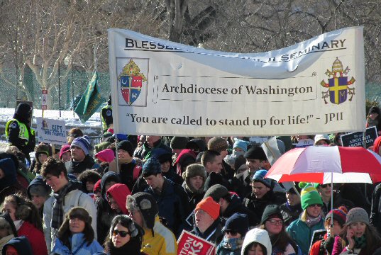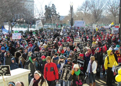 This year, more that 200,000 marchers braved a sudden winter storm which the day before brought more than six inches of snow to the suburbs, and mid-teen temperatures with strong gusting artic winds.