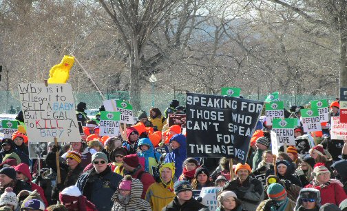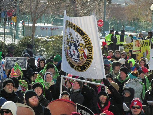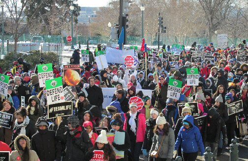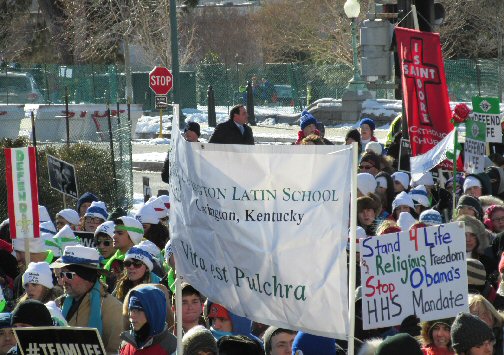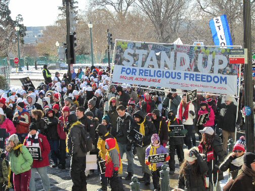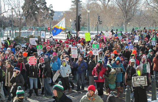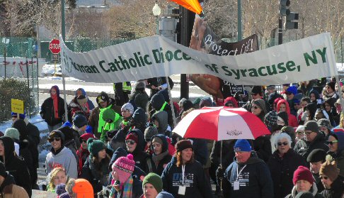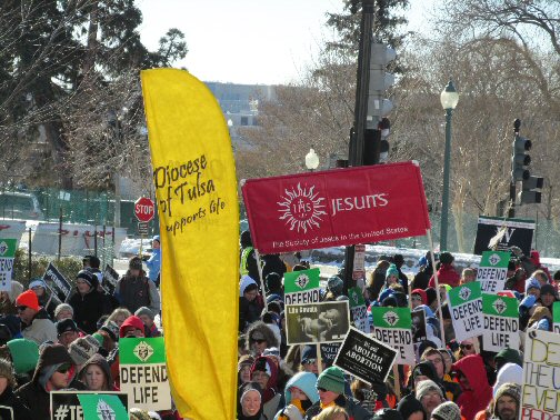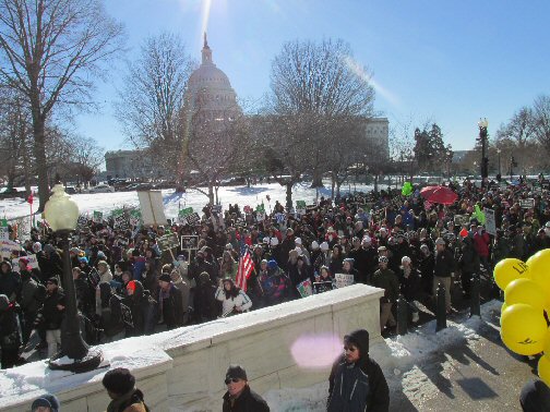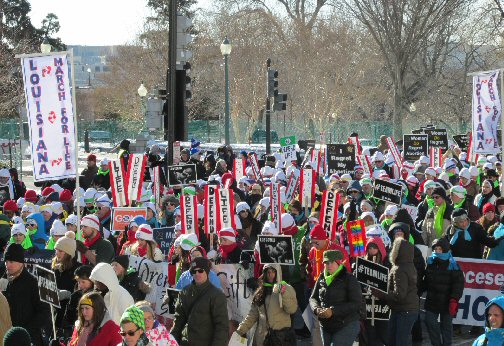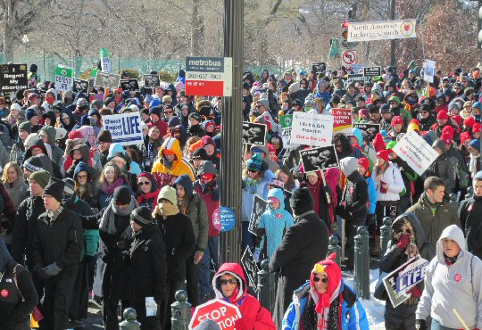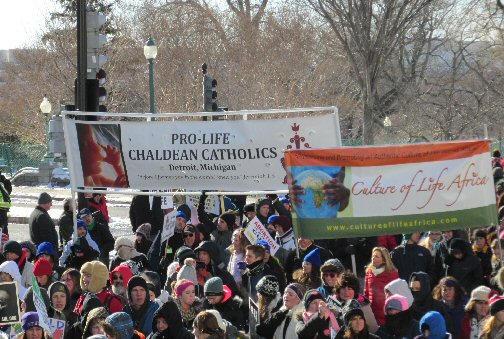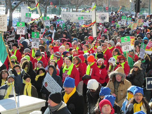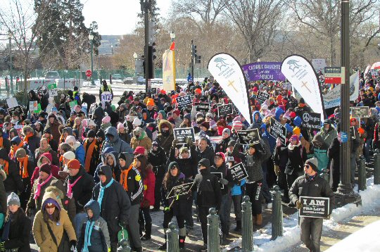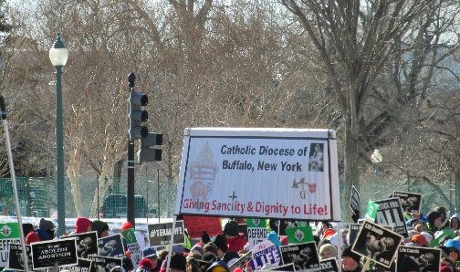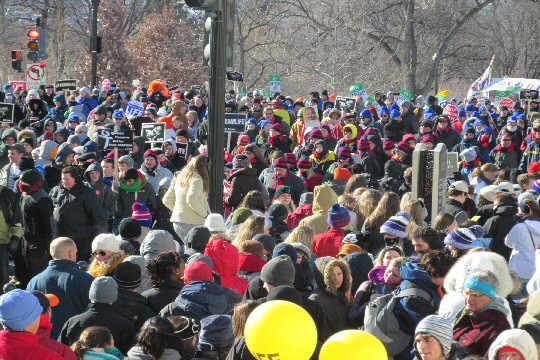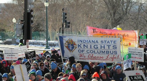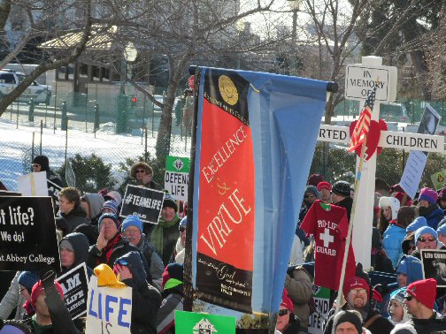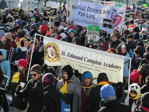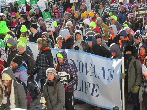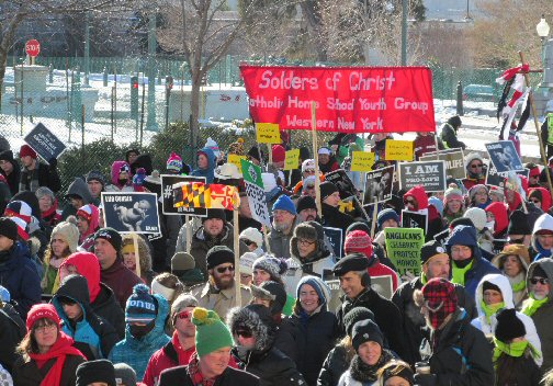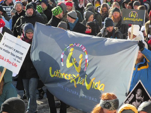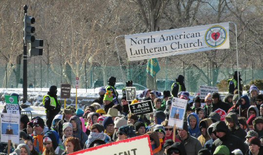 This year, more that 200,000 marchers braved a sudden winter storm which the day before brought more than six inches of snow to the suburbs, and mid-teen temperatures with strong gusting artic winds.