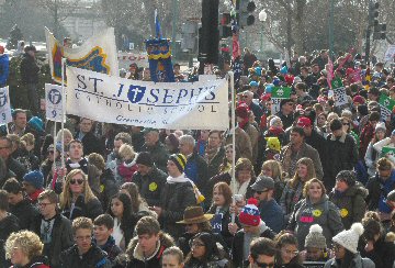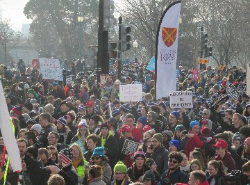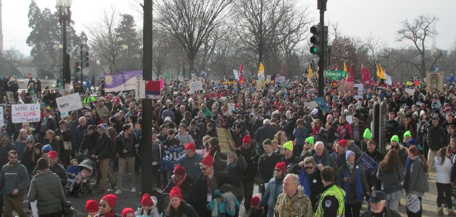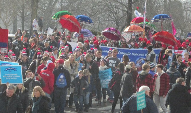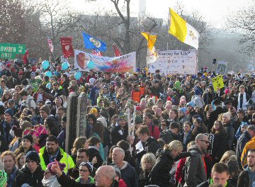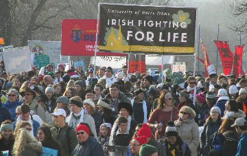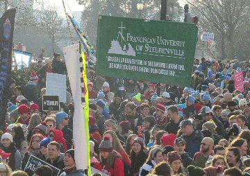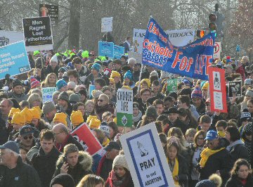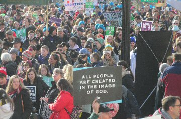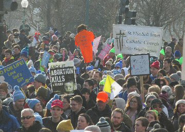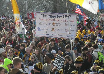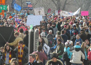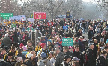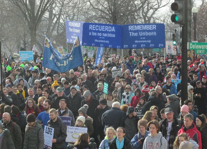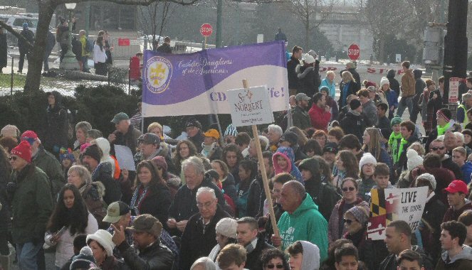A week before the March For Life in 2019, the Washington Area suffered its first winter storm. The snow had just melted but there were news reports that more was coming. The morning was cloudy, but soon the clouds parted and the sun gave warmth to the marchers, some of whom had traveled many miles and represented many pro-life organizations. Everyone was united with the conviction that abortion results in the death of an unborn person. The rally before the march heard comments by President Trump who addressed them. Their presence showed opposition to the Supreme Court's decision that has allowed more than one million unborn babies to be murdered in the United States of America alone each year. Let us ask the Good Lord for courage and his strength to turn this decision around.