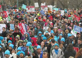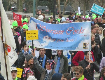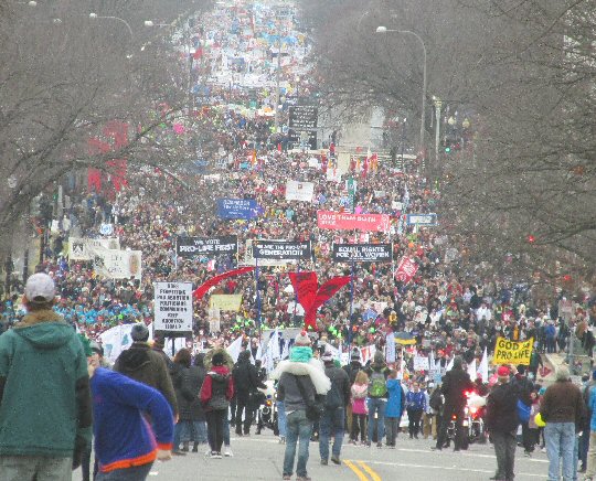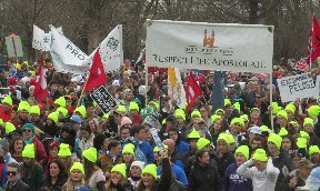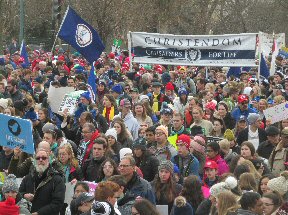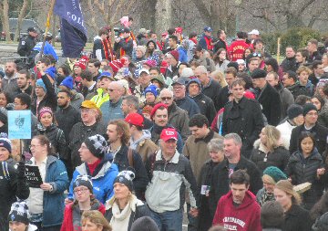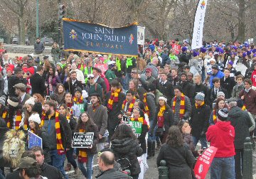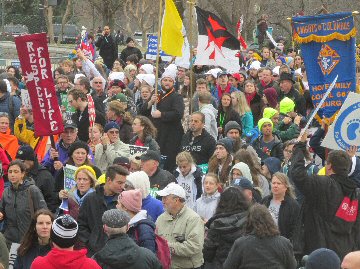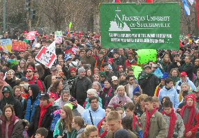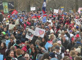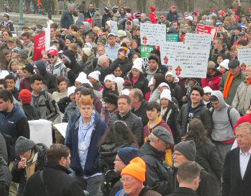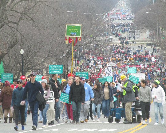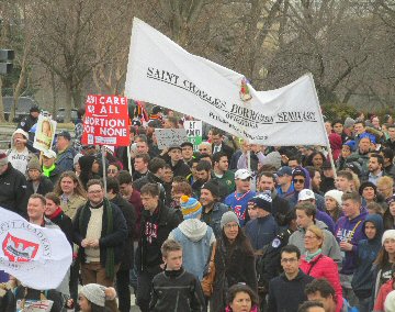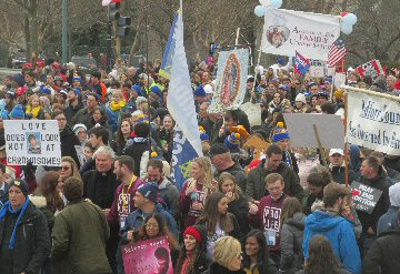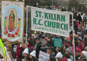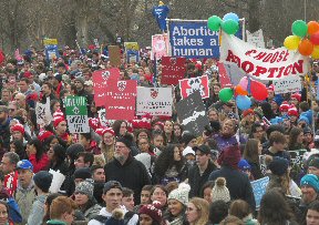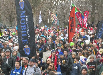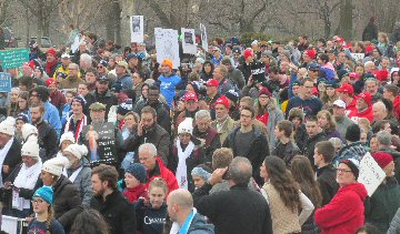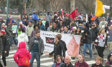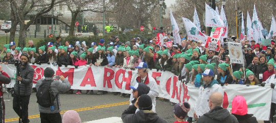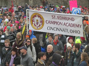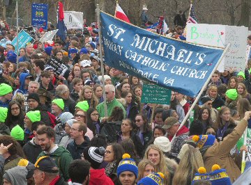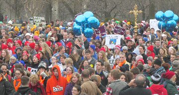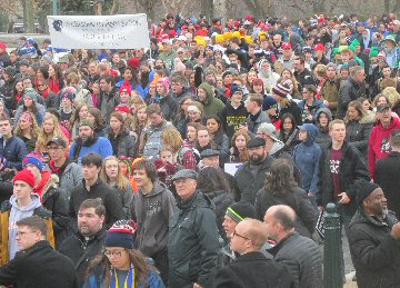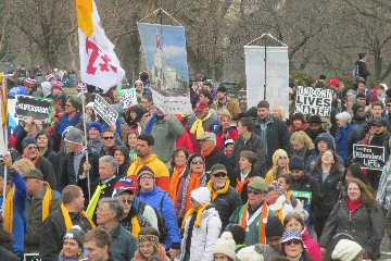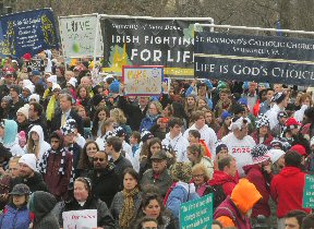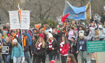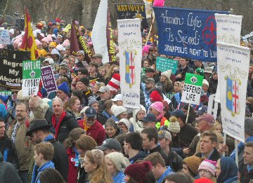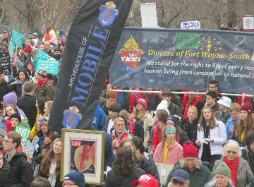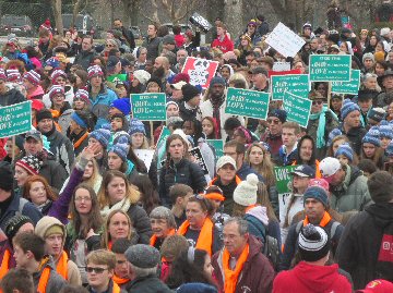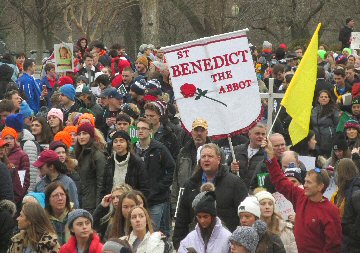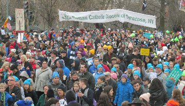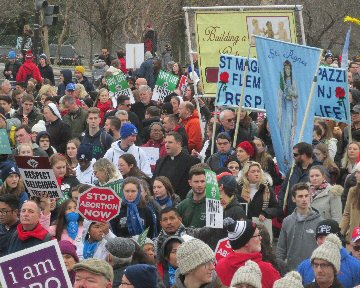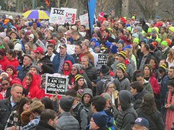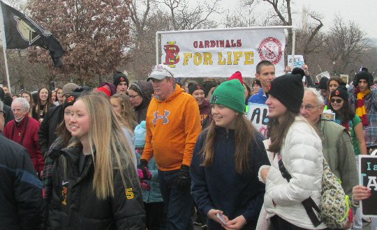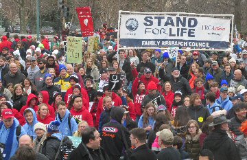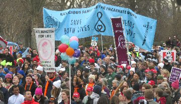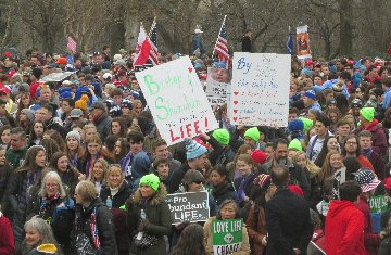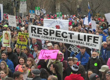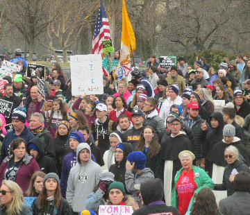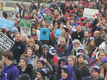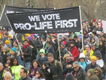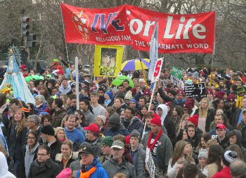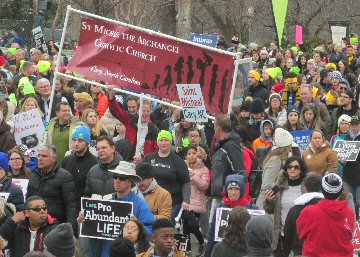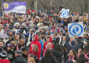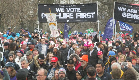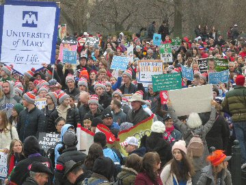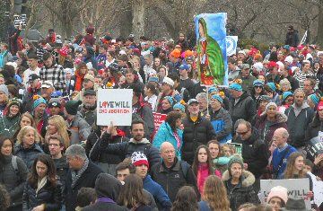 The marchers who gathered in Washington, D.C. for the National Right To Life March were greeted by mild cloudy weather, but before the actual march began, the almost 500 thousand persons who had gathered to show their support for life, were greeted by President Donald J, Trump who encouraged them by saying, "When we see the image of a baby in the womb, we glimpse the majesty of God's creation. . . Unborn children have never had a stronger defender in the White House.  And as the Bible tells us, each person is 'wonderfully made.'  We cannot know what our citizens yet unborn will achieve, the dreams they will imagine, the masterpieces they will create, the discoveries they will make.  But we know this: Every life brings love into this world.  Every child brings joy to a family.  Every person is worth protecting, and above all, we know that every human soul is divine, and every human life - born and unborn is made in the holy image of Almighty God.  I want to thank you.  This is a very special moment.  It's so great to represent you.  I love you all and I say with true passion: Thank you.  God bless you. And God bless America.  Thank you all.  Thank you."