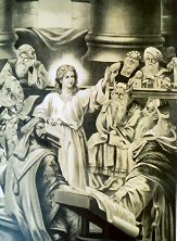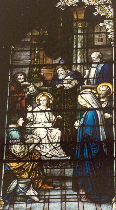 And when he was twelve years old, they went up to Jerusalem according to the custom of the feast (Passover). And after they had fulfilled the days, when they were returning, the boy Jesus remained in Jerusalem, and his parents did not know it. But thinking that he was in the caravan, they had come a day's journey before it occurred to them to look for him among their relatives and acquaintances. And not finding him, they returned to Jerusalem in search of him. And after three days, they found him, in the temple, sitting in the midst of the teachers, listening to them and asking them questions.