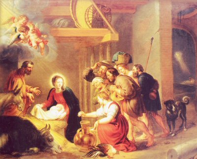 And Joseph also went from Galilee out of the town of Nazareth into Judea to the town of David, which is called Bethlehem - because he was of the house and family of David - to register, together with Mary his espoused wife, who was with child. And it came to pass while they were there, that the days for her to be delivered were fulfilled. And she brought forth her firstborn son, and wrapped him in swaddling clothes, and laid him in a manger, because there was no room for the in the inn.