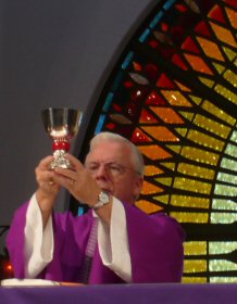 Priest: May this mingling of the Body and Blood of our Lord Jesus Christ bring eternal life to us who receive it.
