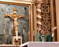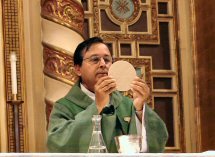 Priest:  May he nourish you always with the teachings of the faith and make you persevere in holy deeds.
