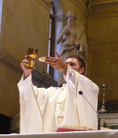 Priest: May this mingling of the Body and Blood of our Lord Jesus Christ bring eternal life to us who receive it.