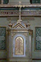 The Priest Approaches and Kisses the Altar:  The altar is a symbol of Christ.  In it are cut five crosses to recall the five wounds of Christ.  The altar also represents the Church and has embedded in it the relics of her saints.  The priest comes to the altar to celebrate the Sacrifice in the Church's name.  Because of the glory surrounding the altar upon which the divine Sacrifice will be made, the kiss of the priest unites the Church to Christ, its Redeemer.