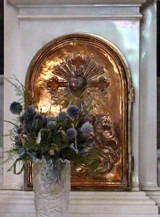 The Priest Approaches and Kisses the Altar:  The altar is a symbol of Christ.  In it are cut five crosses to recall the five wounds of Christ.  The altar also represents the Church and has embedded in it the relics of her saints.  The priest comes to the altar to celebrate the Sacrifice in the Church's name.  Because of the glory surrounding the altar upon which the divine Sacrifice will be made, the kiss of the priest unites the Church to Christ, its Redeemer.