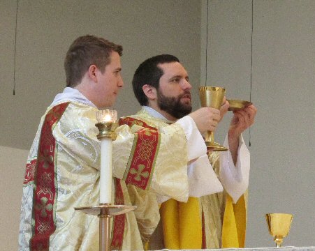 Priest: May this mingling of the Body and Blood of our Lord Jesus Christ bring eternal life to us who receive it.