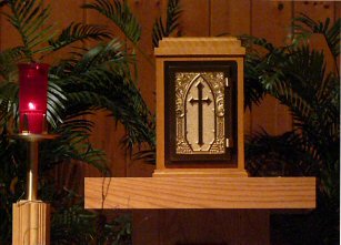The Priest Approaches and Kisses the Altar: The altar is a symbol of Christ. In it are cut five crosses to recall the five wounds of Christ. The altar also represents the Church and has embedded in it the relics of her saints. The priest comes to the altar to celebrate the Sacrifice in the Church's name. Because of the glory surrounding the altar upon which the divine Sacrifice will be made, the kiss of the priest unites the Church to Christ, its Redeemer.