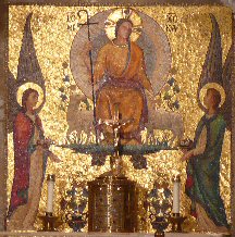 The Priest Approaches and Kisses the Altar: The altar is a symbol of Christ. In it are cut five crosses to recall the five wounds of Christ. The altar also represents the Church and has embedded in it the relics of her saints. The priest comes to the altar to celebrate the Sacrifice in the Church's name. Because of the glory surrounding the altar upon which the divine Sacrifice will be made, the kiss of the priest unites the Church to Christ, its Redeemer.