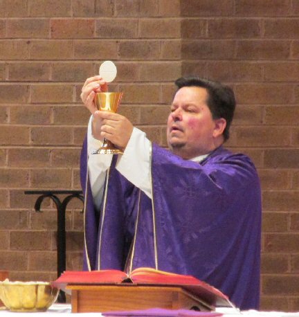 Priest and All: Lord, I am not worthy that you should enter under my roof, but only say the world and my soul shall be healed.