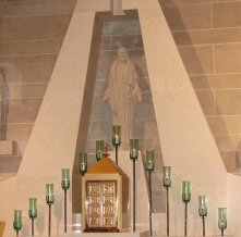 The Gospel:  The Liturgy of the Word is completed by the reading of the Gospel.  Before its reading, the members of the assembly trace the sign of the cross upon the forehead to indicate their mental acceptance of the Truth, on the lips to indicate their readiness to announce it, and over the heart to indicate their sincere desire to accept it into their lives.  The "Good News" of the Gospel tells that God's kingdom has come for all to hear, accept, and announce to the world for its salvation.  It is God who is speaking to us.  Christ comes to teach us by the example of His life and by His own words.