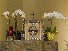 The Priest Approaches and Kisses the Altar: The altar is a symbol of Christ. In it are cut five crosses to recall the five wounds of Christ. The altar also represents the Church and has embedded in it the relics of her saints. The priest comes to the altar to celebrate the Sacrifice in the Church's name. Because of the glory surrounding the altar upon which the divine Sacrifice will be made, the kiss of the priest unites the Church to Christ, its Redeemer.