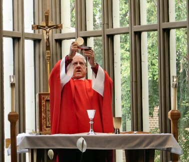 Red priestly vestments symbolize a life of sacrifice